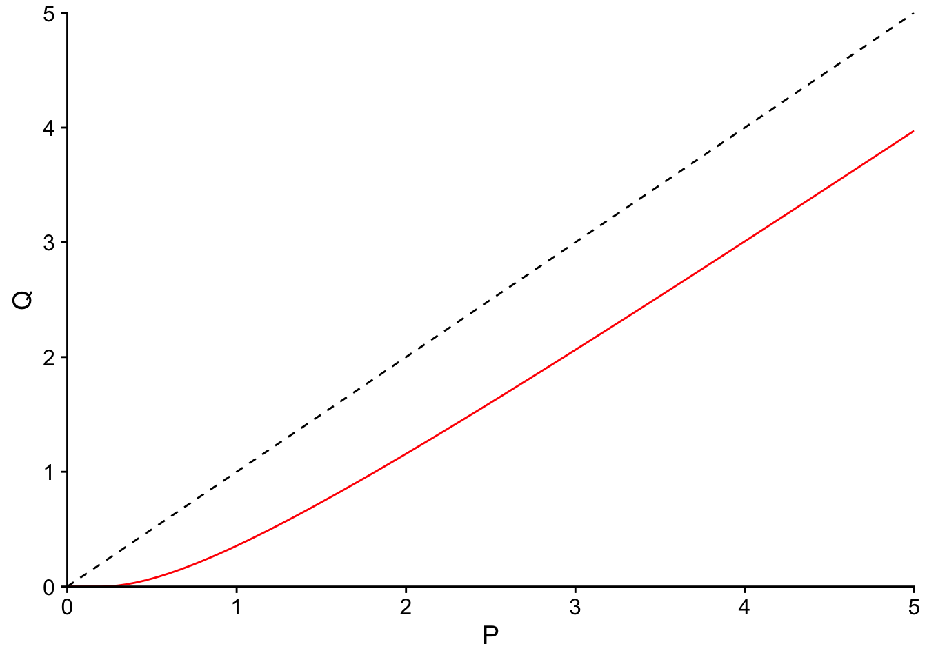 \[ Q^*=\dfrac{(P^*-0.2)^2}{P^*+0.8} \]