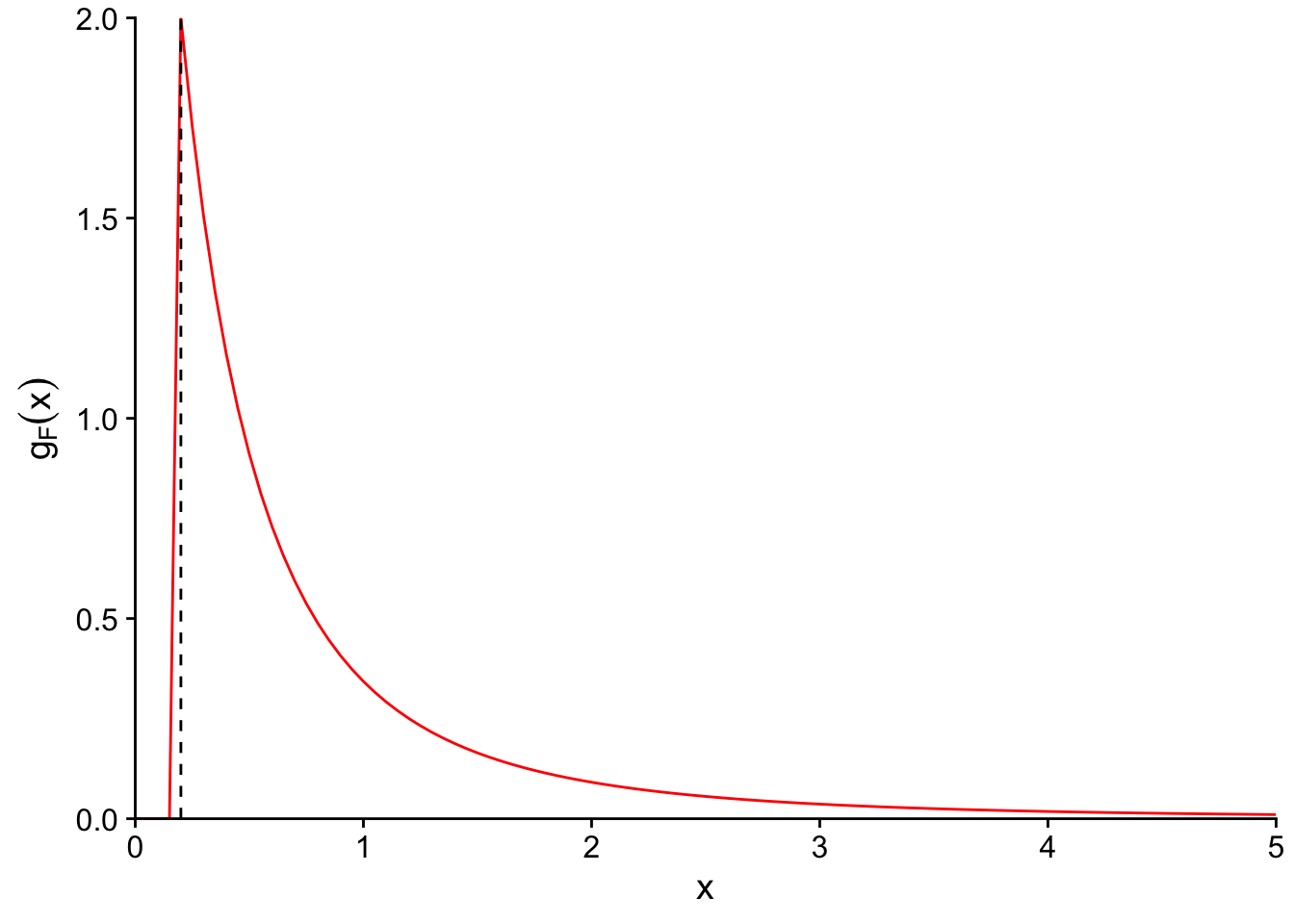 当\(S=1\)时,概率密度函数\(\mathcal{g}_F(x)\)的曲线形式如下